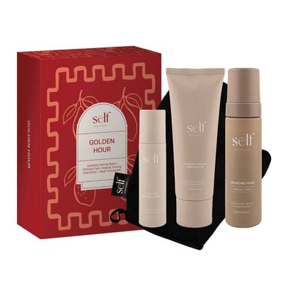 Golden Hour: That fleeting moment just after sunrise or before sunset, bathes everything in soft, warm light, giving your skin a glow that’s impossible to fake… until now. The SELF quartet, powered by skin-loving ingredients, delivers a flawless, streak-free tan as natural and luminous as golden hour itself.