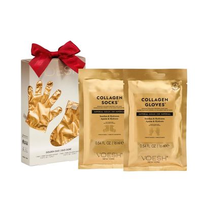 VOESH Collagen Socks – Imperial Gold: These innovative gold foil socks lock in moisture, delivering deep hydration and repairing cracked heels in just 15 minutes.